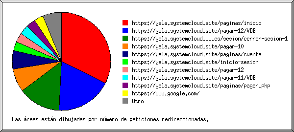 Listado de los URLs remitentes, ordenados por número de peticiones redireccionadas.